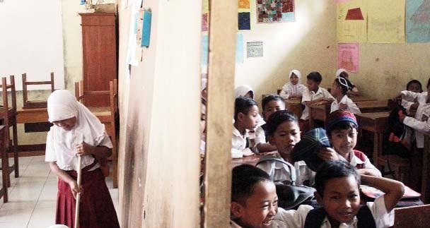 suasana belajar siswa SDIT Miftahul Ulum yang terpaksa disekat dikarenakan kurangnya ruang kelas