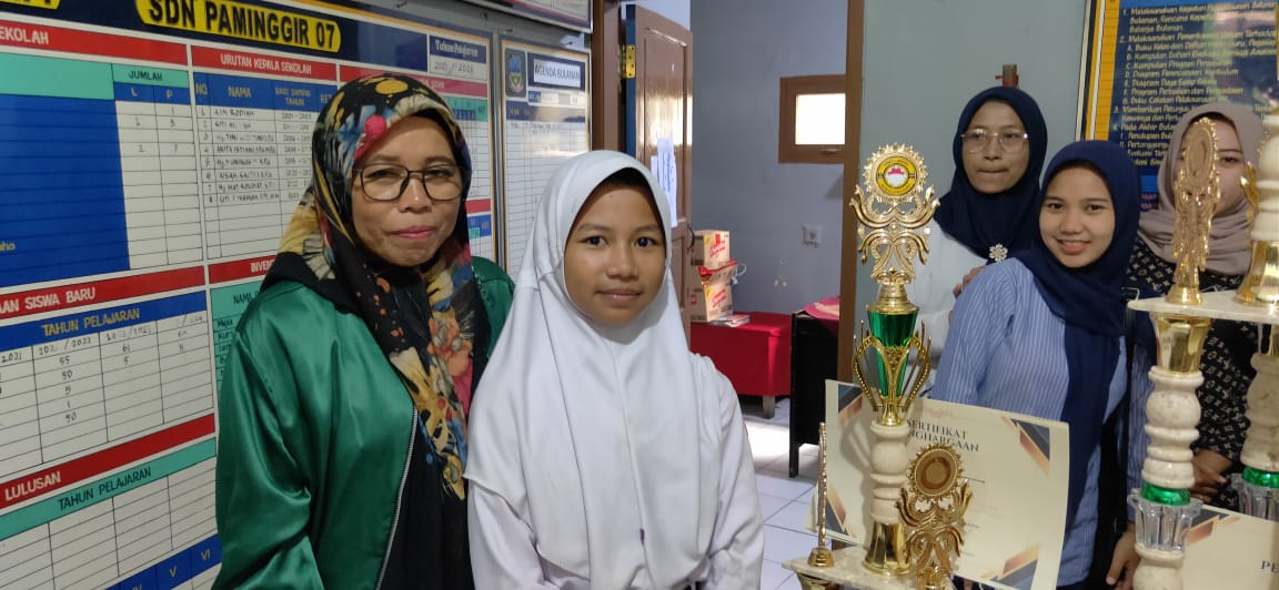 Rasa bahagia dan bangga terlihat di raut Assyfa yang mendapat penghargaan sebagai Komandan terbaik, termasuk ibunya Nendah Karlinda saat bersama para orang tua wali murid lainnya menyerahkan semua piala dan sertifikat penghargaan di ruang kepala SDN 5 Paminggir.
