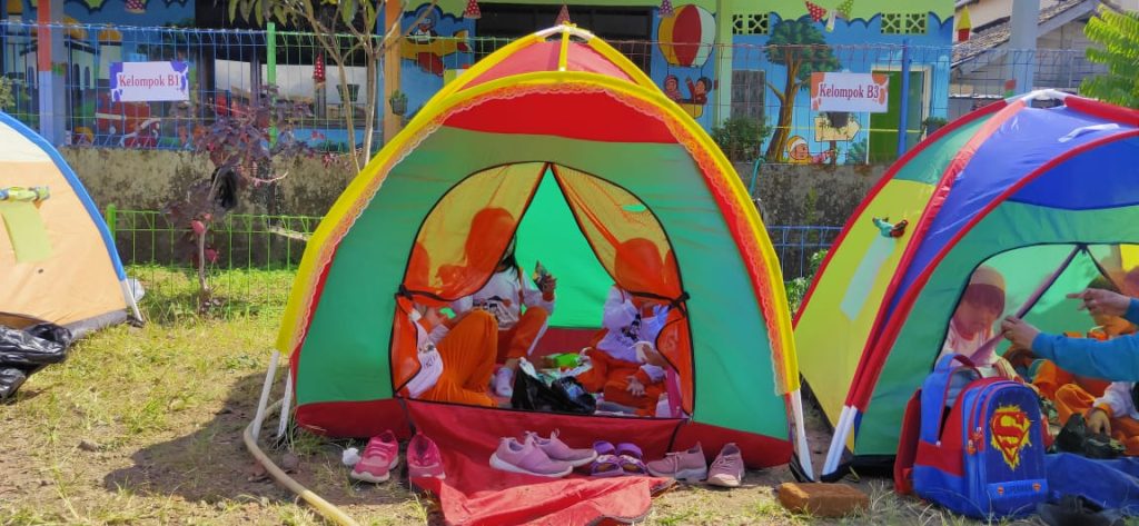 TARKID, (teraskandaga.com).- Mengusung tema “Belajar Disiplin dan Mandiri serta Gotong-royong”, untuk kali pertama, Taman Kanak-kanak dan Play Group (TK & PG) Baiturrahman 3 melakukan perkemahan di lingkungan sekolahnya di Jl. Adung No. 2, Desa Tarogong, Kecamatan Tarogong Kidul, Jum’at (2/9/2022).