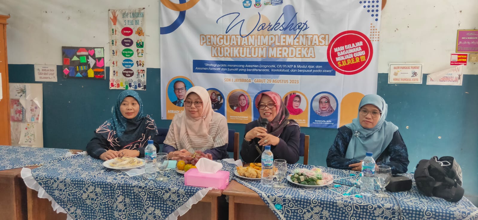 teraskandaga.com – Workshop Penguatan Implementasi Kurikulum Merdeka “Strategi Praktis Merancang Asesmen Diagnostik, CP/TO/ATP & Modul Ajar, dan Asesmen Formatif dan Sumatif yang Berdiferensiasi, Kontekstual, dan Berpusat Pada Siswa” berlangsung di SDN 1 Jayaraga di Jl. Proklamasi No. 1, Kecamatan Tarogong Kidul, Kabupaten Garut, Jawa Barat, pada Selasa (29/8/2023).