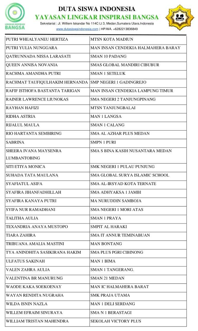 “Dari lomba ini nanti masih ada seleksi lanjutan, akan dipilih Top 6 Duta Siswa yang berkesempatan mewakili Indonesia ke luar negeri, serta Top 15 Duta Siswa yang langsung menjalankan program kerja,” ungkap Yasmin.